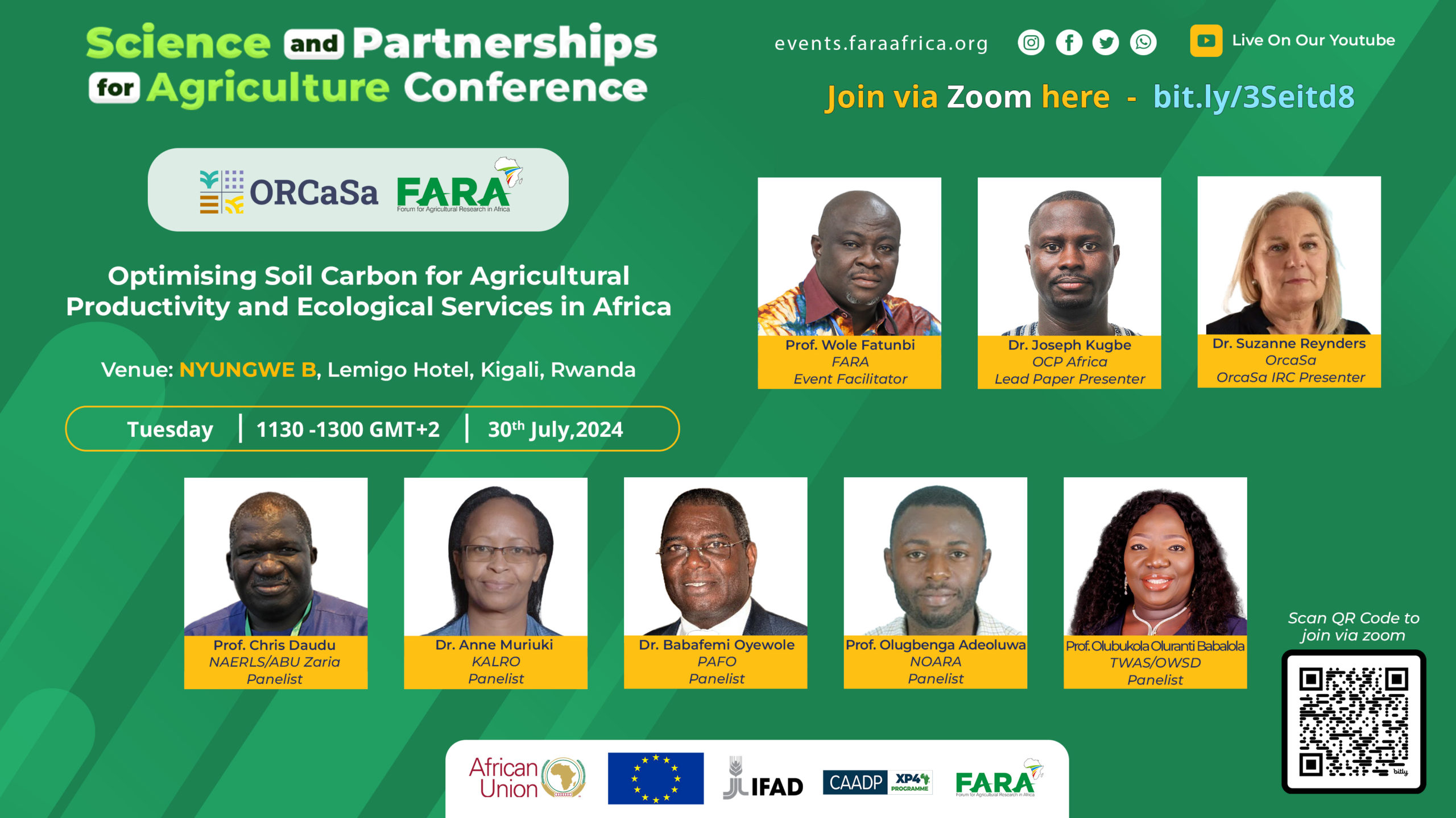 The hybrid discussion (onsite and virtual) will be animated by Suzanne Reynders, ORCaSa coordinator, and Wole Fatunbi, the project’s regional node for Africa and AG Director of Research and Innovation at the Forum for Agricultural Research in Africa (FARA).